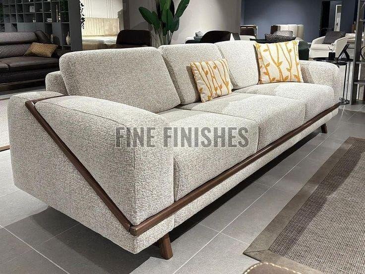 Modern Wooden Trim Three Seater Luxury Sofa