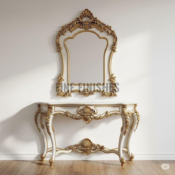 Classic Ornamental Wooden Console Table with Mirror Frame